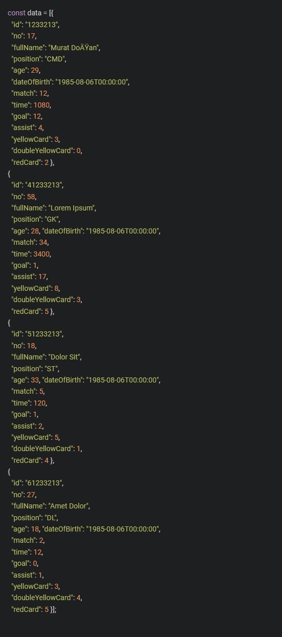 Table 에 출력되는 데이터 편집은 js/script.js 에서 할 수 있습니다.