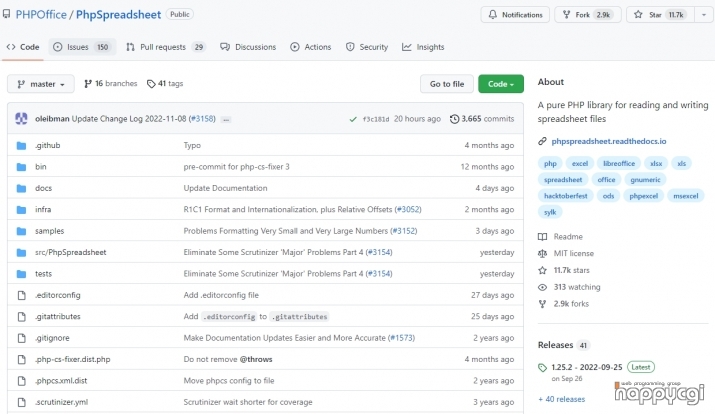 해피CGI윤실장 2022. 12. 29. 09:15PhpSpreadsheet는 PHP로 개발된 라이브러리 입니다.
