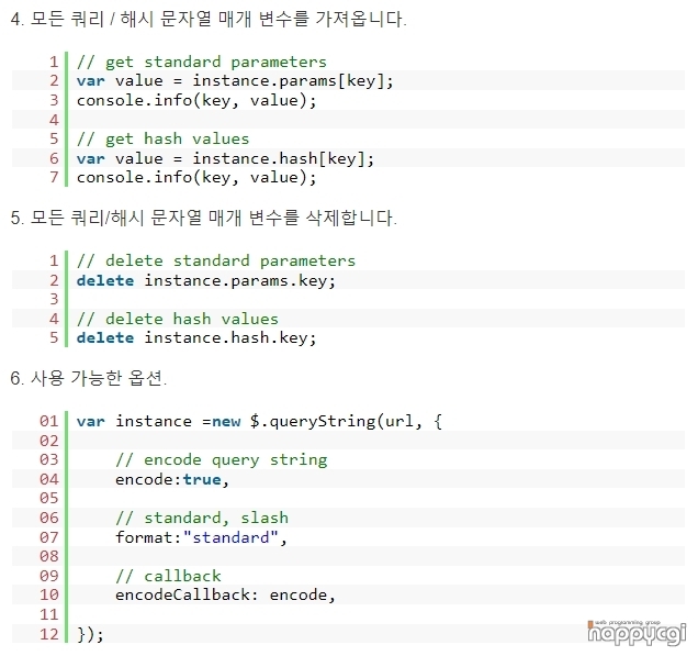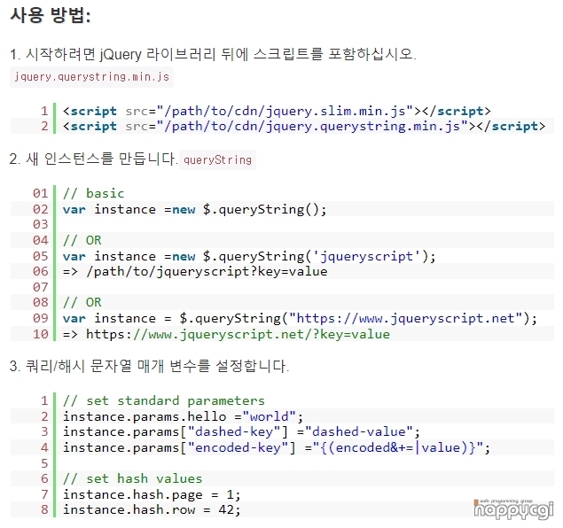 해피CGI윤실장 2022. 12. 30. 09:16URL의 쿼리스트링을 조작(추가,수정,삭제)할 수 있는 jquery 플러그인 입니다.