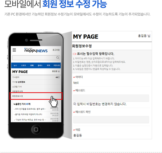 해피 인터넷뉴스 솔루션 프리미엄 모바일 Ver2.6으로업그레이드 되었습니다.