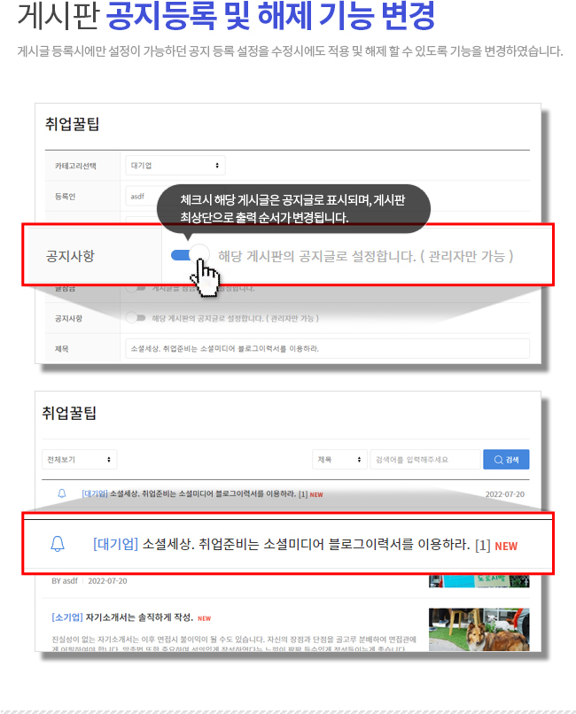| [업그레이드] 해피 종합구인구직 솔루션 타입A 모바일 Ver1.8 (장착옵션)로 업그레이드 되었습니다. (0) | 2023.01.03 |