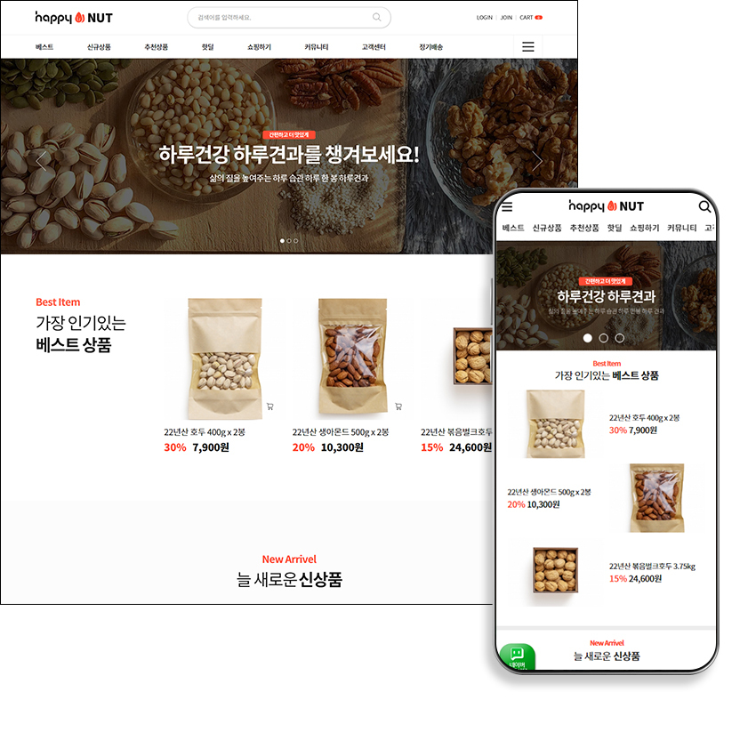 업종별 솔루션 쇼핑몰14(견과류) 와이드 홈페이지가 새롭게 출시되었습니다.