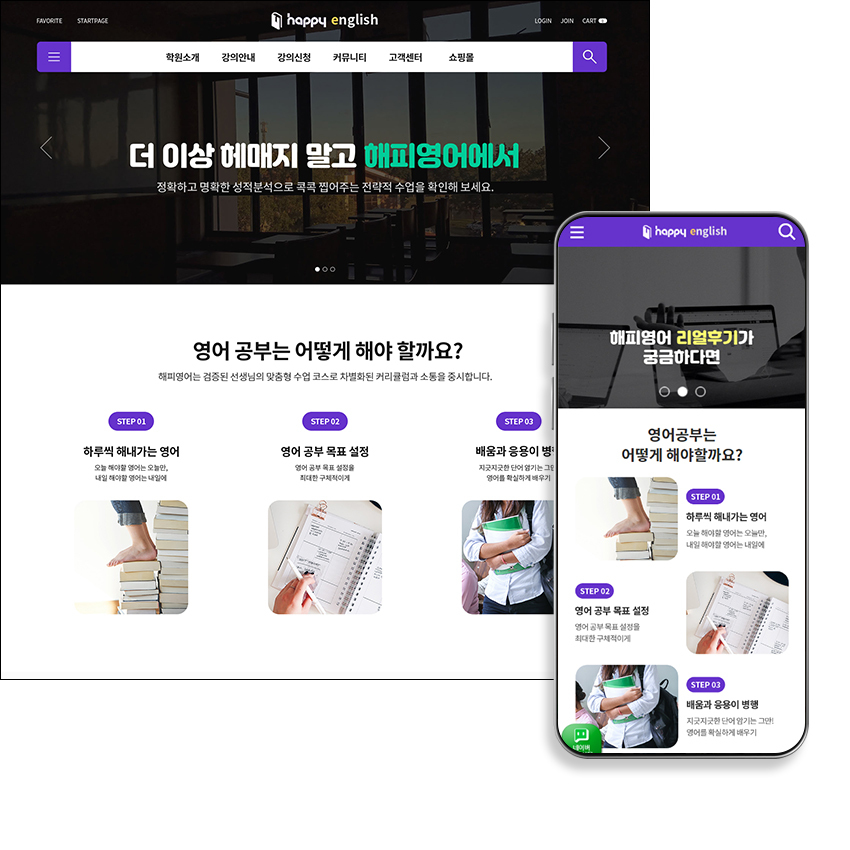 업종별 솔루션 영어학원A 와이드 홈페이지가 새롭게 출시되었습니다.