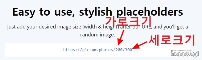 https://picsum.photos/ 페이지로 접속하여 사용법 확인이 가능 하지만,