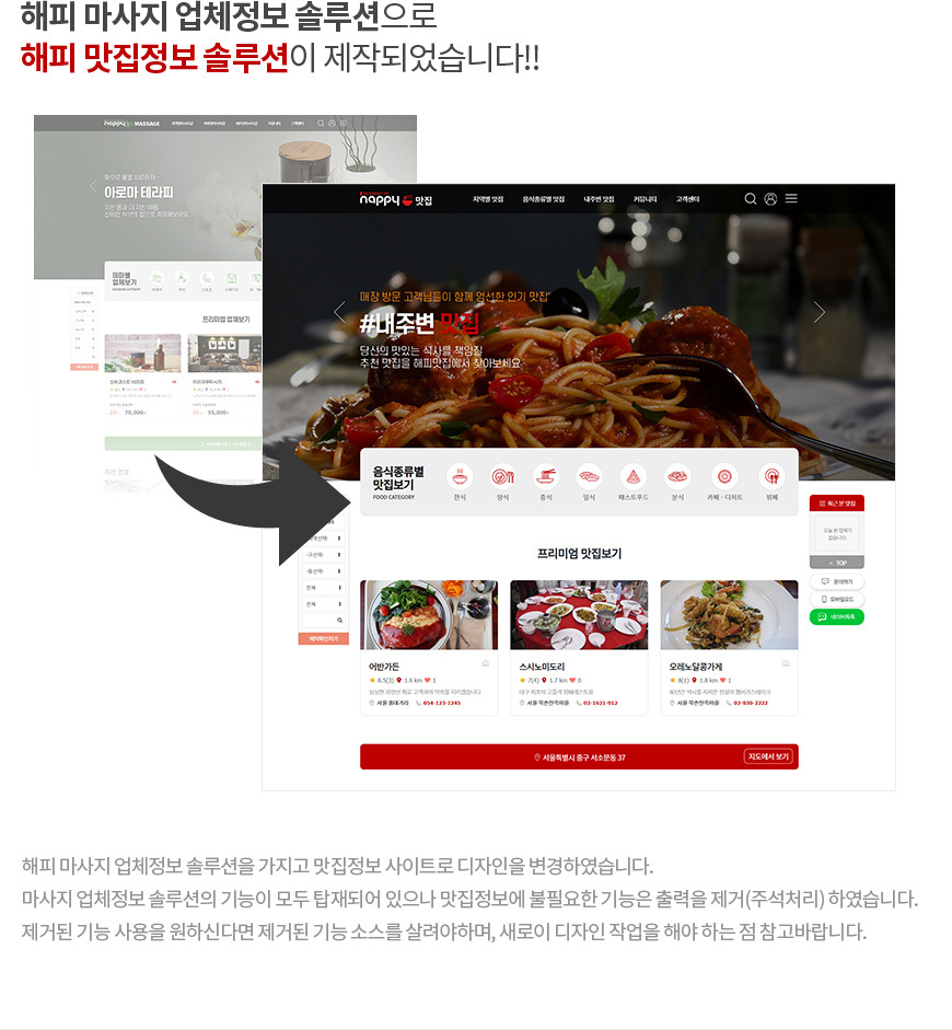 [출시] 해피 맛집와이드 솔루션 타입B Ver6.3 [실시간예약 비내장,미니홈피 내장]이 새롭게 출시되었습니다 본문
