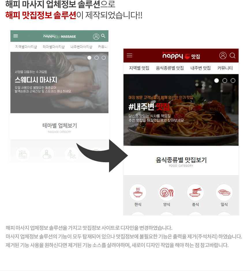[출시] 해피 맛집와이드 솔루션 타입B 모바일 Ver2.3 (실시간예약 내장,장착옵션)이 새롭게 출시되었습니다 본문