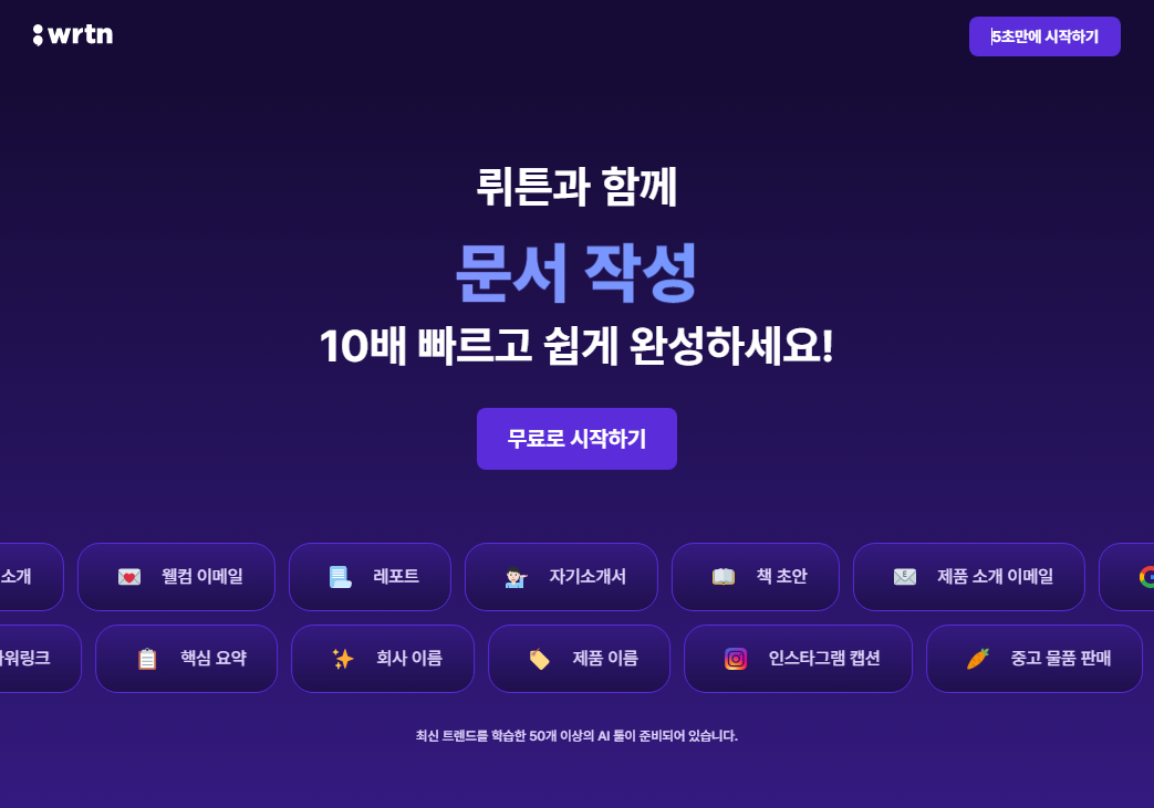 키워드를 입력하여 원하는 상황에 맞춰 문장을 생성하는 AI 기반 콘텐츠 생성 플랫폼 뤼튼입니다.