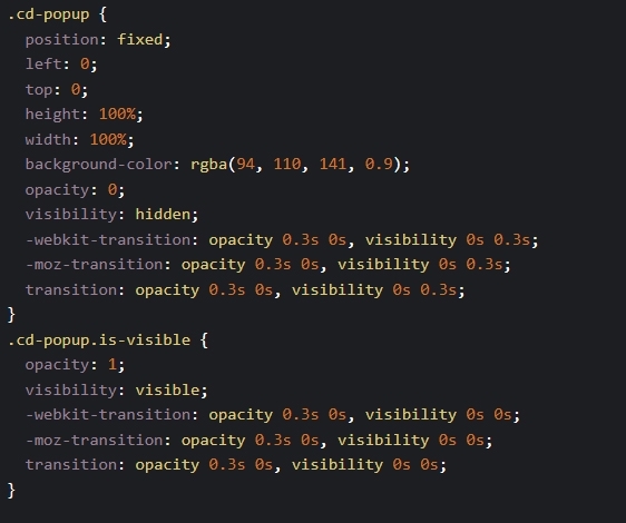 css로 모달 팝업창을 보이게 디자인 합니다.