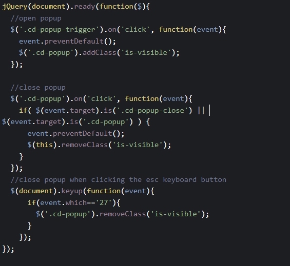 클릭시 모달 팝업 영역에 클래스를 삽입합니다.