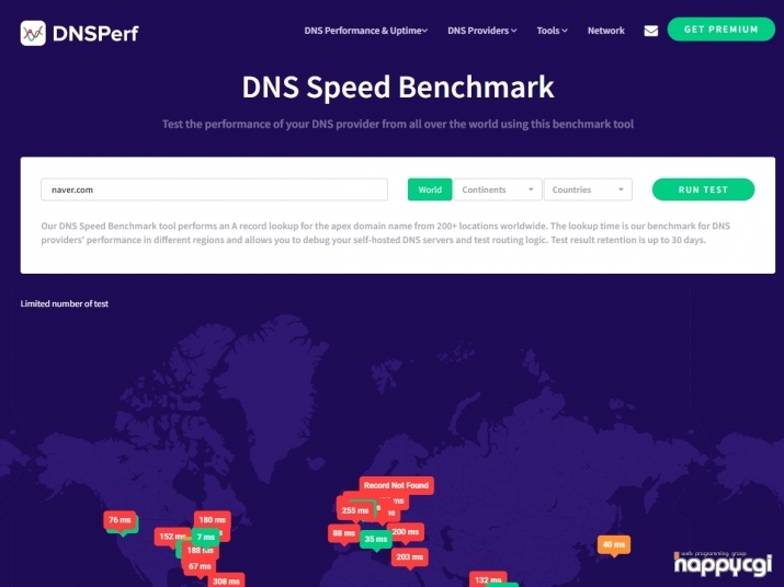 [해피CGI][cgimall] DNS Performance - 전세계에서 DNS 응답속도 체크 사이트