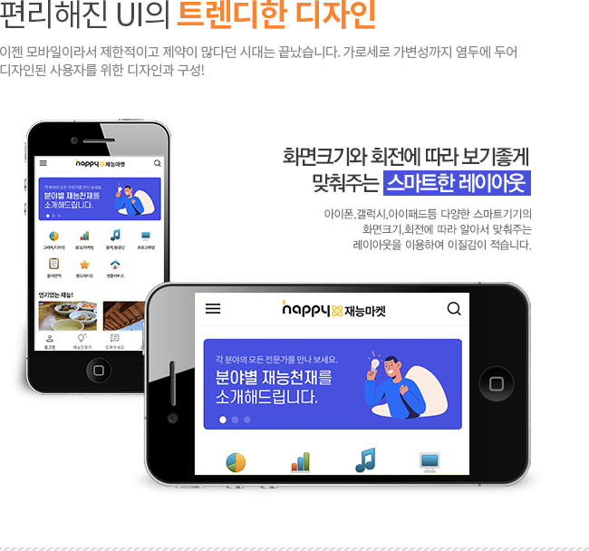 [업그레이드] 해피 재능마켓 솔루션 모바일 Ver2.1 (A타입 장착옵션) 로 업그레이드 되었습니다 본문