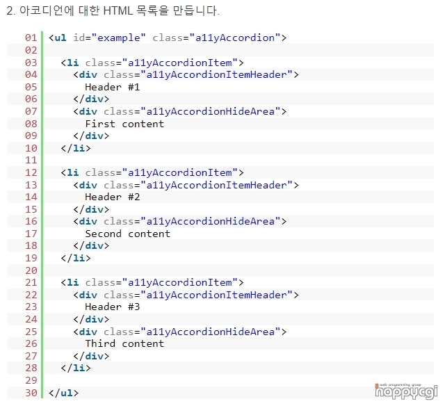 해피CGI윤실장 2023. 6. 20. 09:15a11y Accordion은 웹 페이지 내 콘텐츠 확장 및 축소를 위한