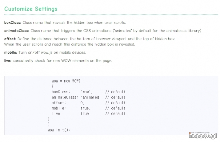 [해피CGI][cgimall] wowjs - 화면 스크롤 애니메이션 효과 스크립트 본문