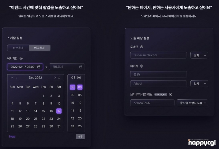 이벤트 시간 , 특정 페이지에서 노출 등도 지원 합니다.