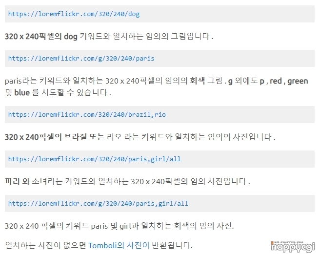 [해피CGI][cgimall] 원하는 이미지 출력 API - LoremFlickr 본문