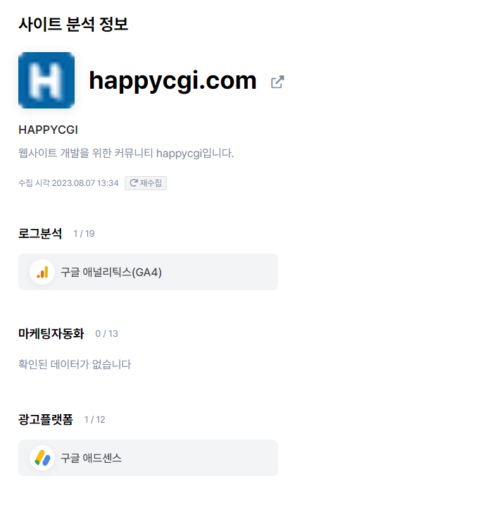 사이트별 사용하는 각종 마케팅 도구를 분석하는 툴입니다.