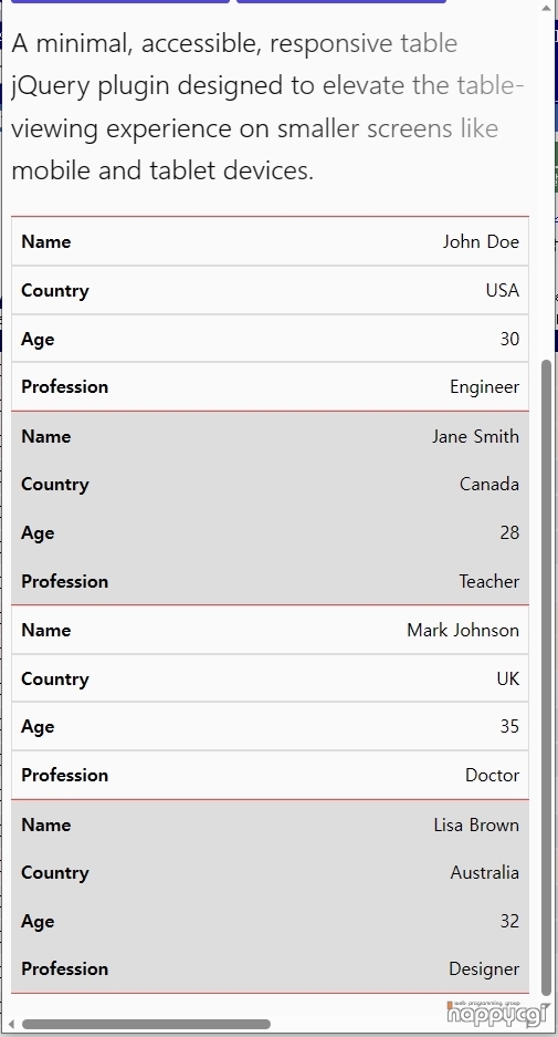 [해피CGI][cgimall] Minimal Accessible Responsive Table Plugin - jQuery Easy Table A11Y