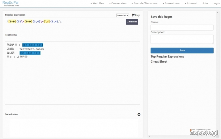 [해피CGI][cgimall] RegEx Pal - 정규식 테스트 웹사이트 본문
