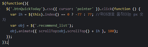 스크립트네 높이값 조절을 통해 이동하는 높이값 설정도 쉽네요.
