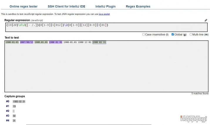 정규식 테스트기를 제공하는 웹사이트 myregexp.com 입니다.