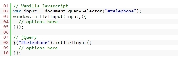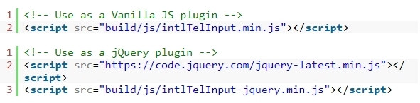 3. 페이지 하단에 jQuery 라이브러리와 intlTelInput.min.js 파일을 호출합니다.