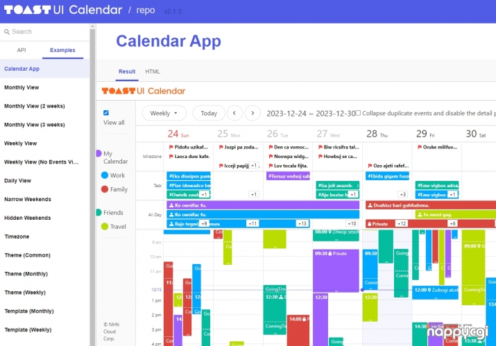 https://nhn.github.io/tui.calendar/latest/tutorial-00-calendar-app 페이지에서 다양한 샘플 데모를 확인이 가능 합니다.