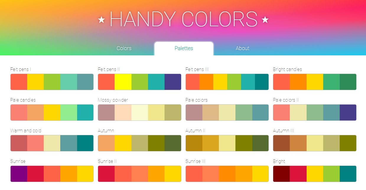 또한 여러 테마별 색상 팔레트도 제공하여, 컨셉에 따른 색상 조합을 선택해서 CSS에 지정된 색상명으로