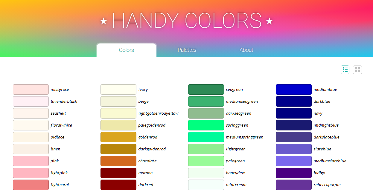 [해피CGI][cgimall] CSS로 지정된 색상명을 확인하고 조합할 수 있는 handy colors