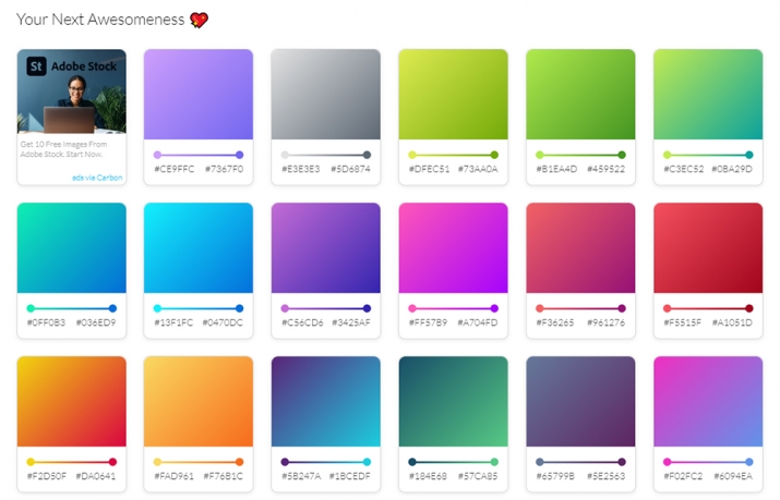 그라디언트 컬러코드를 추천하고, 실시간으로 컬러를 변경해서 매칭해 볼 수 있는 유용한 사이트를 소개합니다.