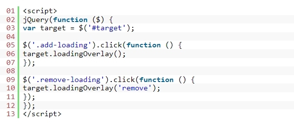 1. jQuery 라이브러리와 loading-overlay.min.js 파일을 호출합니다.