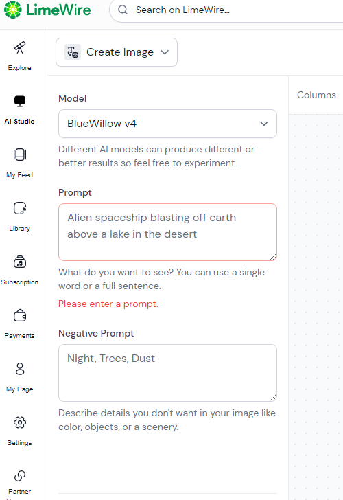 2. Prompt 입력창에 생성 키워드 또는 문장을 입력하세요.
