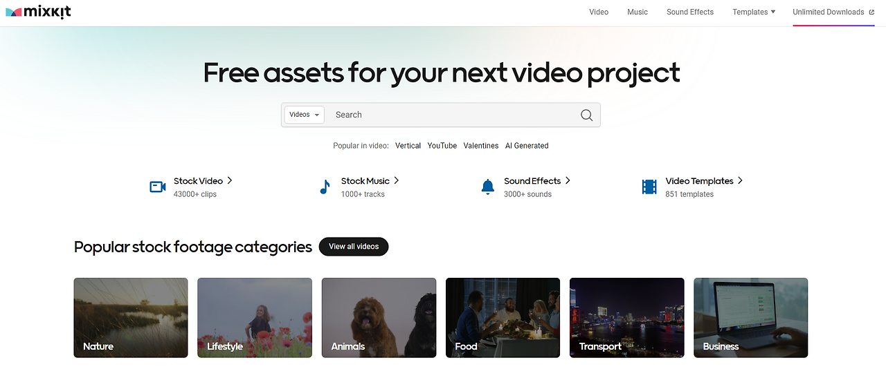 mixkit는 화려한 효과의 영상소스, 음원까지 한곳에서 다운로드 가능하며,