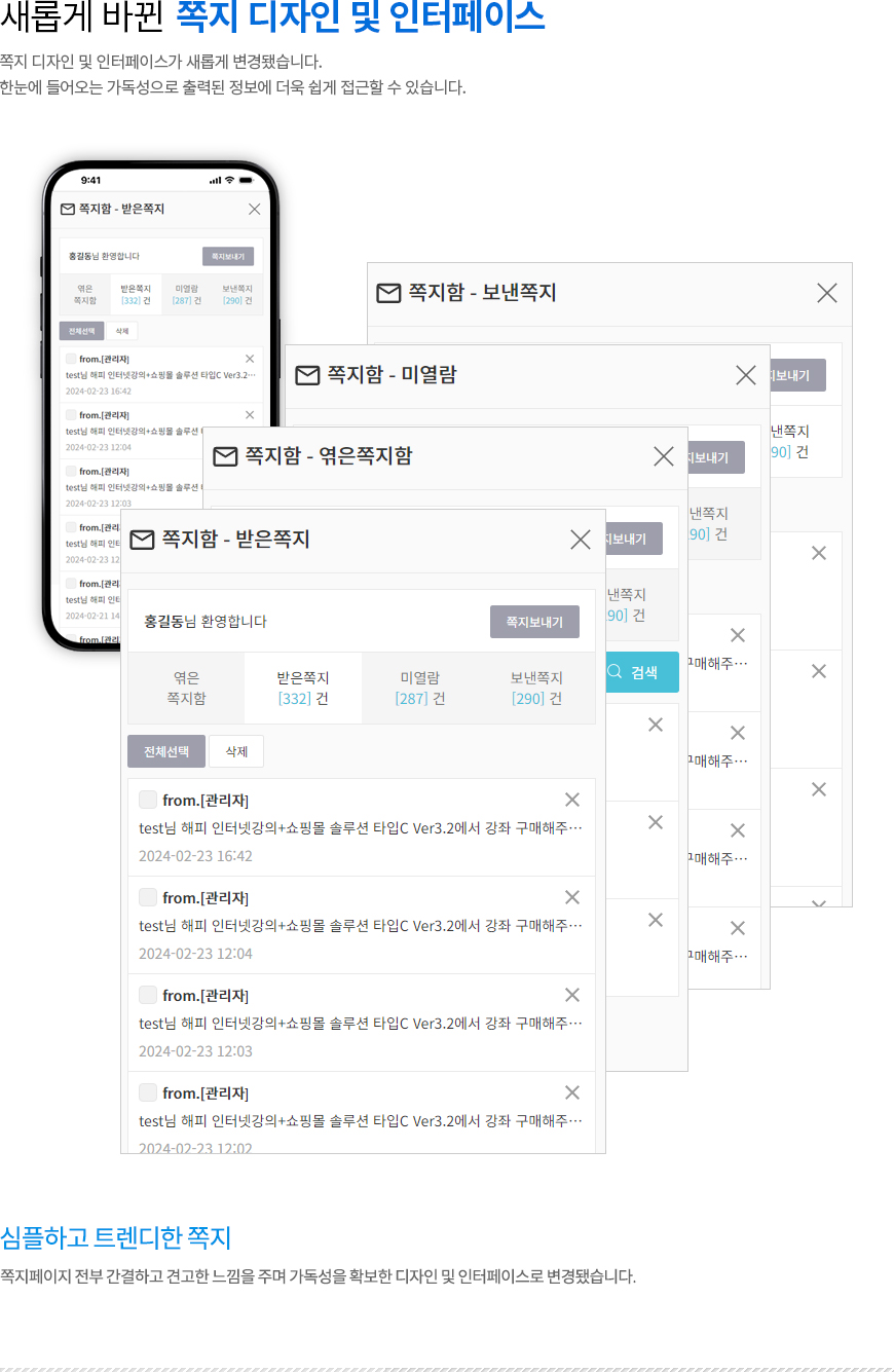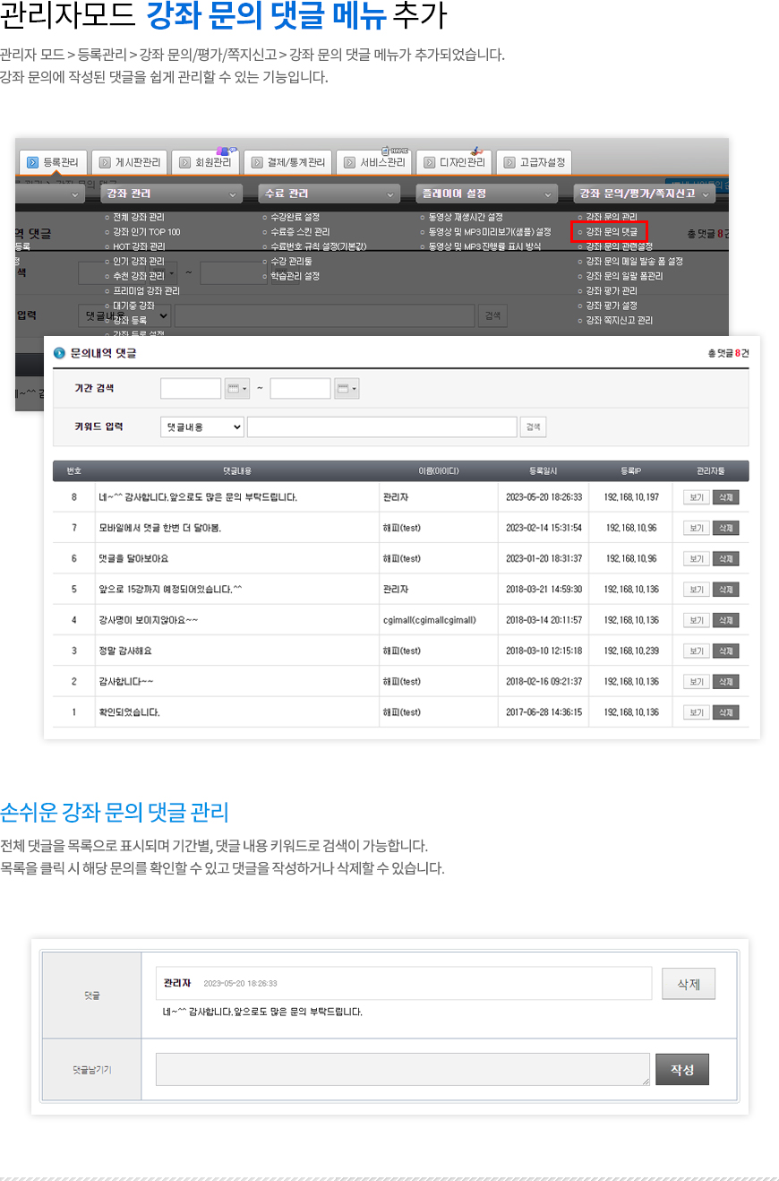 | [업그레이드] 해피 인터넷강의 솔루션 Ver3.3 [단독형] 스킨A 업그레이드 되었습니다 (0) | 2024.03.06 |