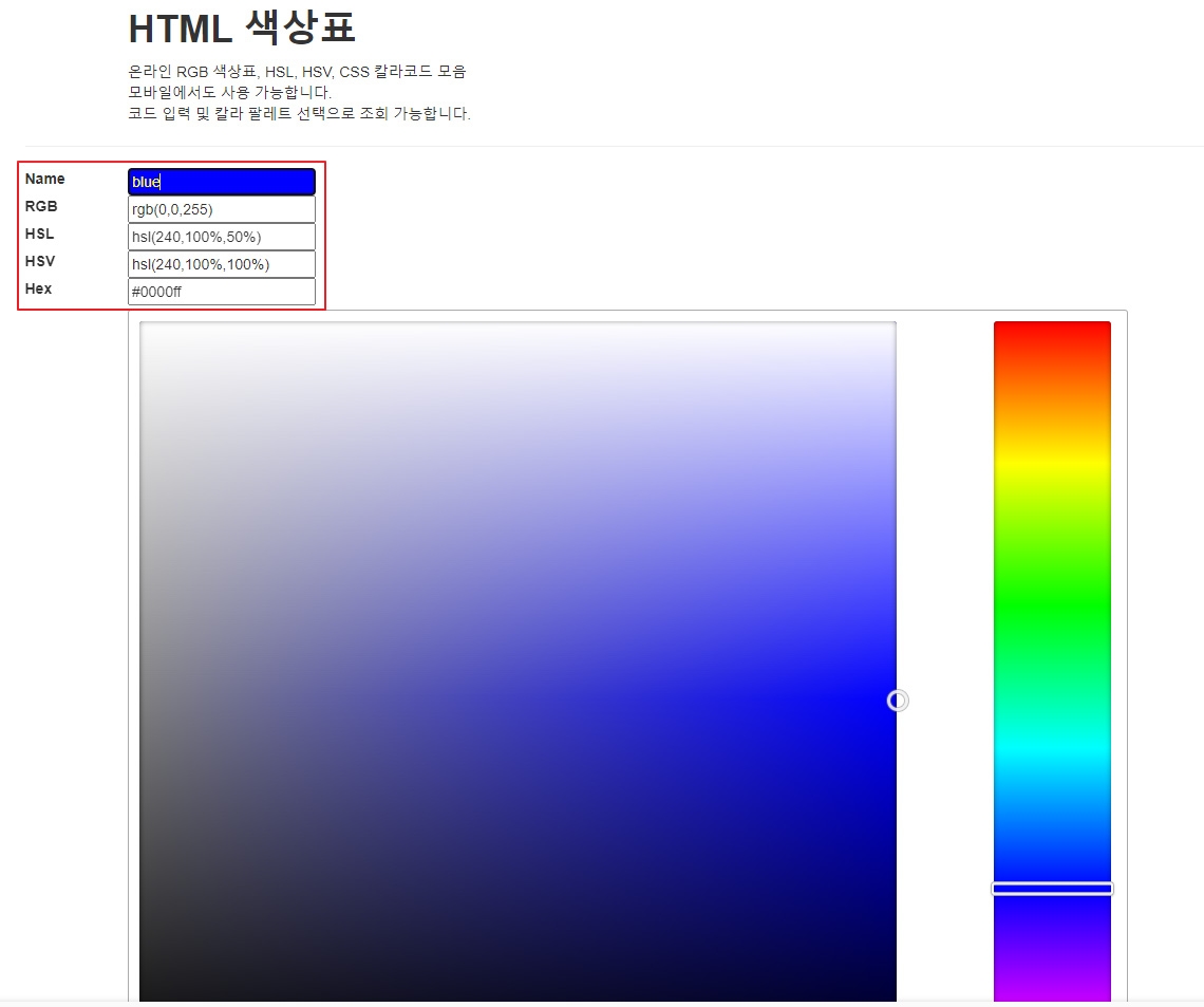 온라인 RGB 색상표, HSL, HSV, CSS 색상코드 모음 - wepplication.github.io/tools/colorPicker/ 본문