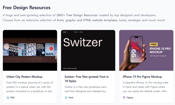 이 사이트에서는 PSD 파일, Sketch 파일, HTML/CSS 템플릿 등 다양한 리소스를 무료로 다운로드할 수 있습니다.