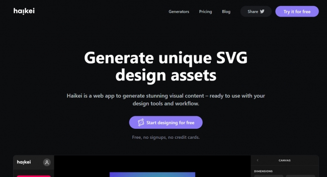 Start designing for free 버튼을 클릭하시면 생성 페이지로 이동합니다.