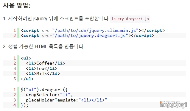 [해피CGI][cgimall] Easy Draggable & Reorderable jQuery Plugin - dragSort.js
