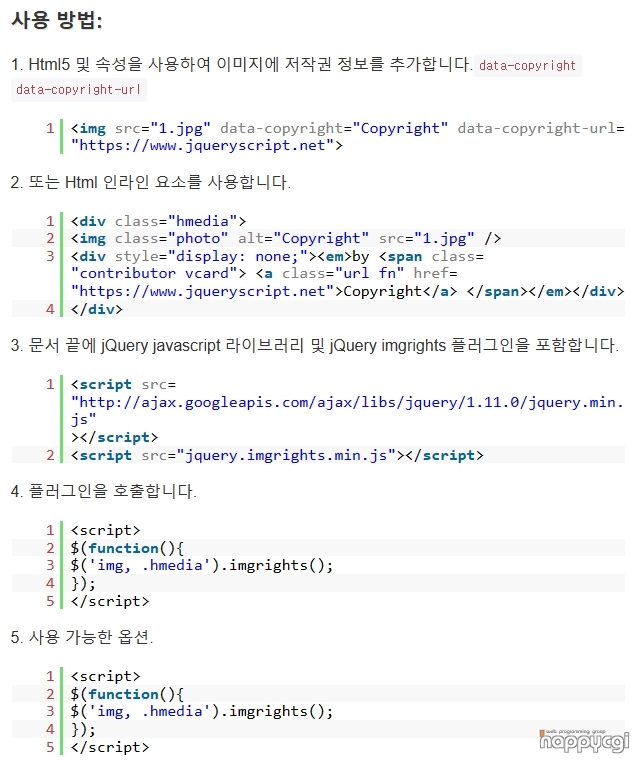 각 이미지마다 서로 다른 copyright 표시가 필요한 페이지에 사용하기에 좋겠네요