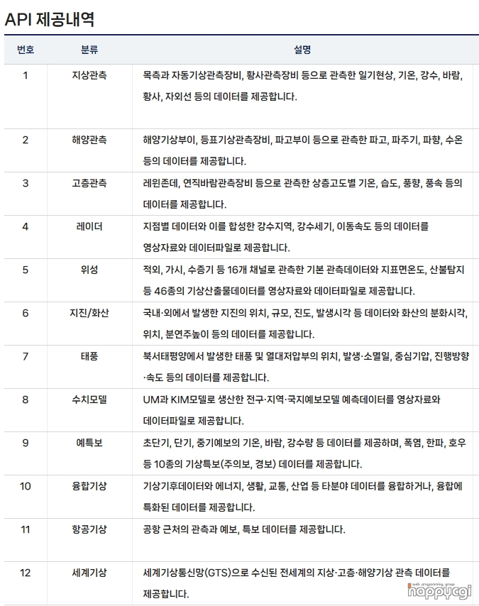 [해피CGI][cgimall] 기상청 API 허브 - 각종 날씨정보를 API로 제공 본문