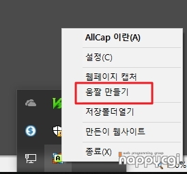 움짤을 제작하기 위해서는 작업표시줄 트레이 아이콘에 우측 마우스를 클릭해서 [움짤 만들기]를 클릭해 줍니다.