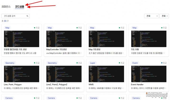 아래와 같이 다양한 코드샘플을 실행결과와 함께 볼 수 있습니다.