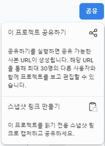 오른쪽 상단 공유를 눌러 공유하면, 최대 30명의 다른 사용자와 화이트보드를 공유할 수 있습니다.