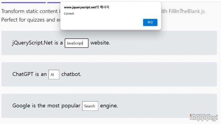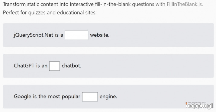 [해피CGI][cgimall] Create Engaging Fill-in-the-Blank Quizzes with fillInTheBlank.js 본문