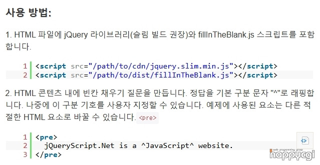 [해피CGI][cgimall] Create Engaging Fill-in-the-Blank Quizzes with fillInTheBlank.js