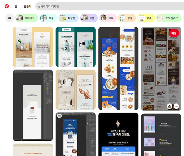 특정 키워드를 입력하면 그와 관련된 다양한 이미지를 즉시 검색할 수 있습니다. 특히 트렌드, 특정 디자인 스타일, 특정 카테고리의 아이디어를 찾는 데 유리합니다.