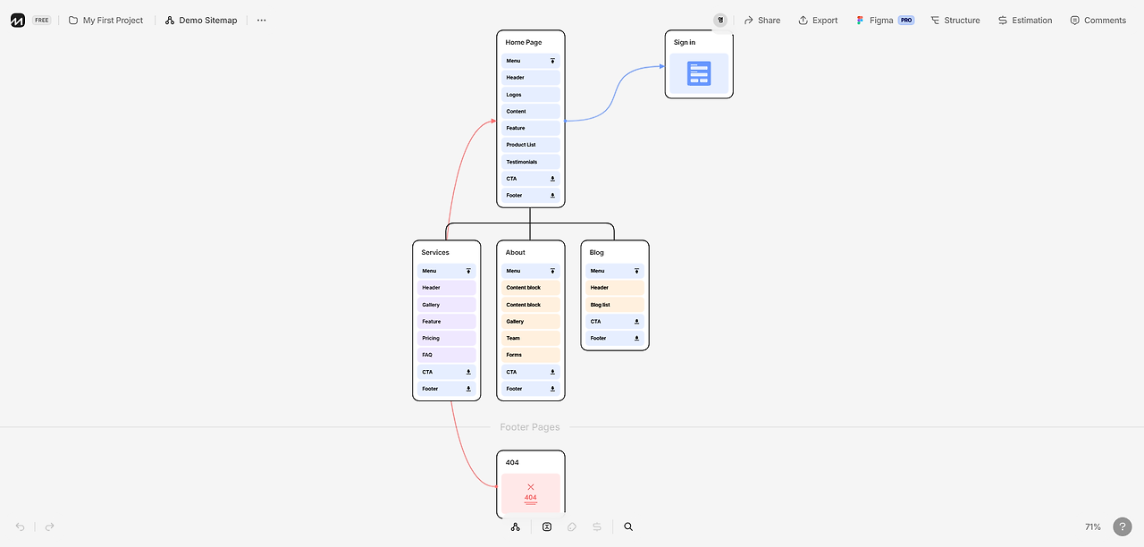 웹사이트 제작에 시작인 사이트맵 제작 및 업무 진행상태 및 흐름도도 제작 가능한 flowmapp