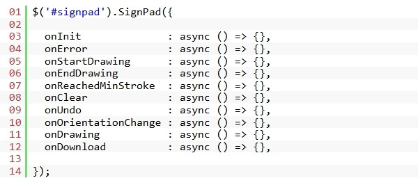 4. 기본 설정으로 기본 서명 패드를 생성하기 위해 플러그인을 초기화합니다.