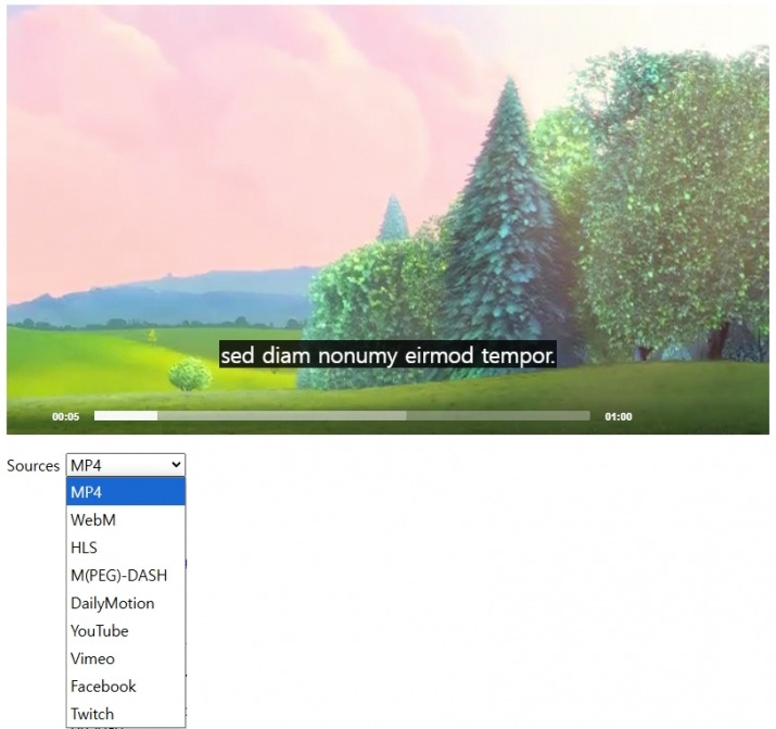 Sources 부분을 보면 영상 주소를 플레이어에게 전달합니다.