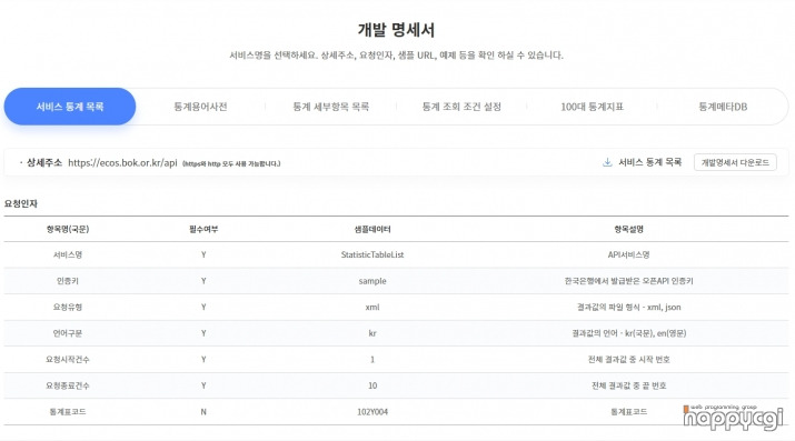 https://ecos.bok.or.kr/api/#/DevGuide/DevSpeciflcation