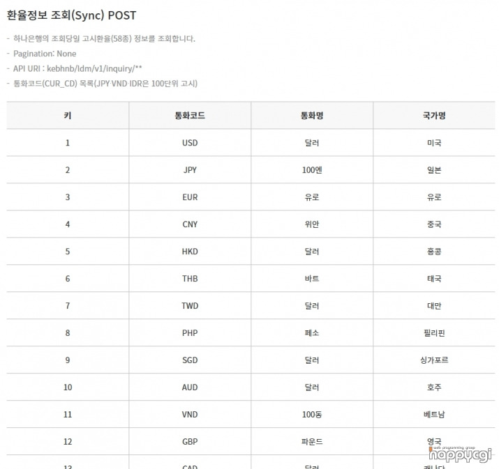 [해피CGI][cgimall] 하나금융그룹 - 환율정보조회 Open API 본문